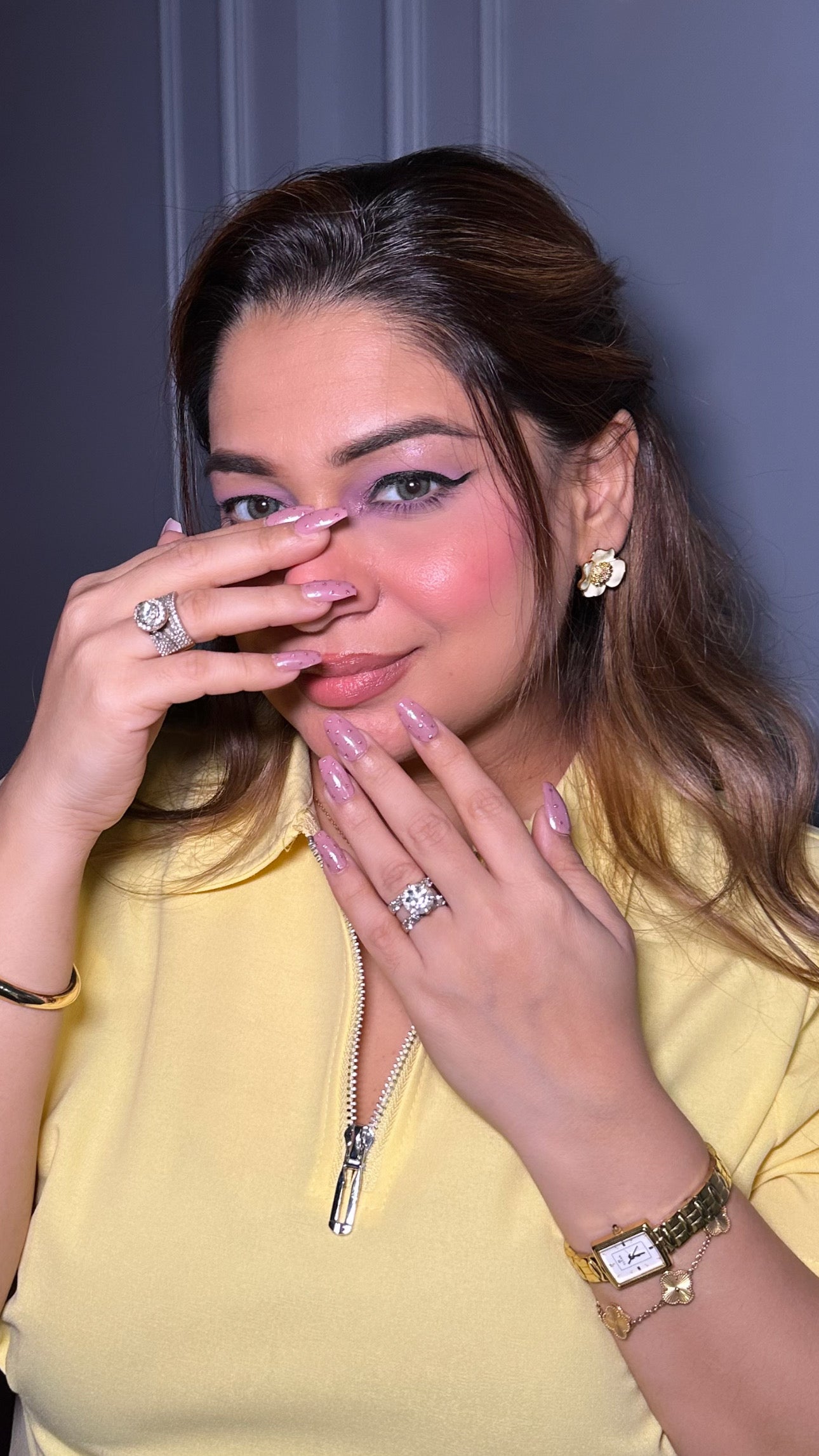 Champolka Stiletto nails from The Nail Factory feature a champagne-toned base with delicate polka-inspired detailing on a sleek stiletto shape. The glossy finish highlights the fine accents, while the elongated tip creates a bold, elegant silhouette. Playful yet refined, this design pairs beautifully with both festive and statement styles.