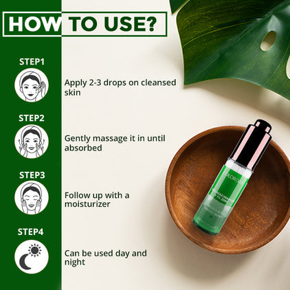 Put 4-5 oil drops on your fingertips and gently smooth the facial serum in a slanting outward direction, from nose to ears, eyebrows to hairline & to the neck jawline after cleansing. Allow 1-2 minutes before layering with other serums or moisturisers. Apply few drops every morning and before bed for extra hydration and rejuvenation. Use AM and PM. Patch test recommended.