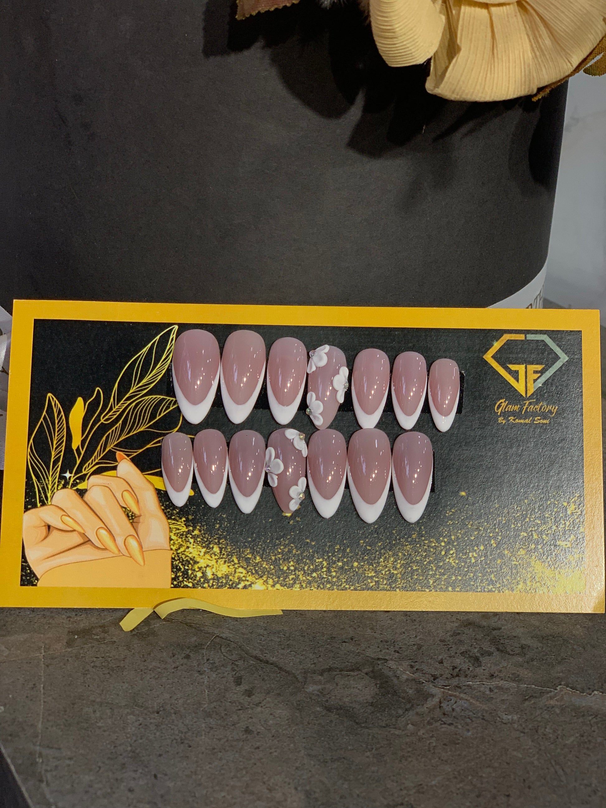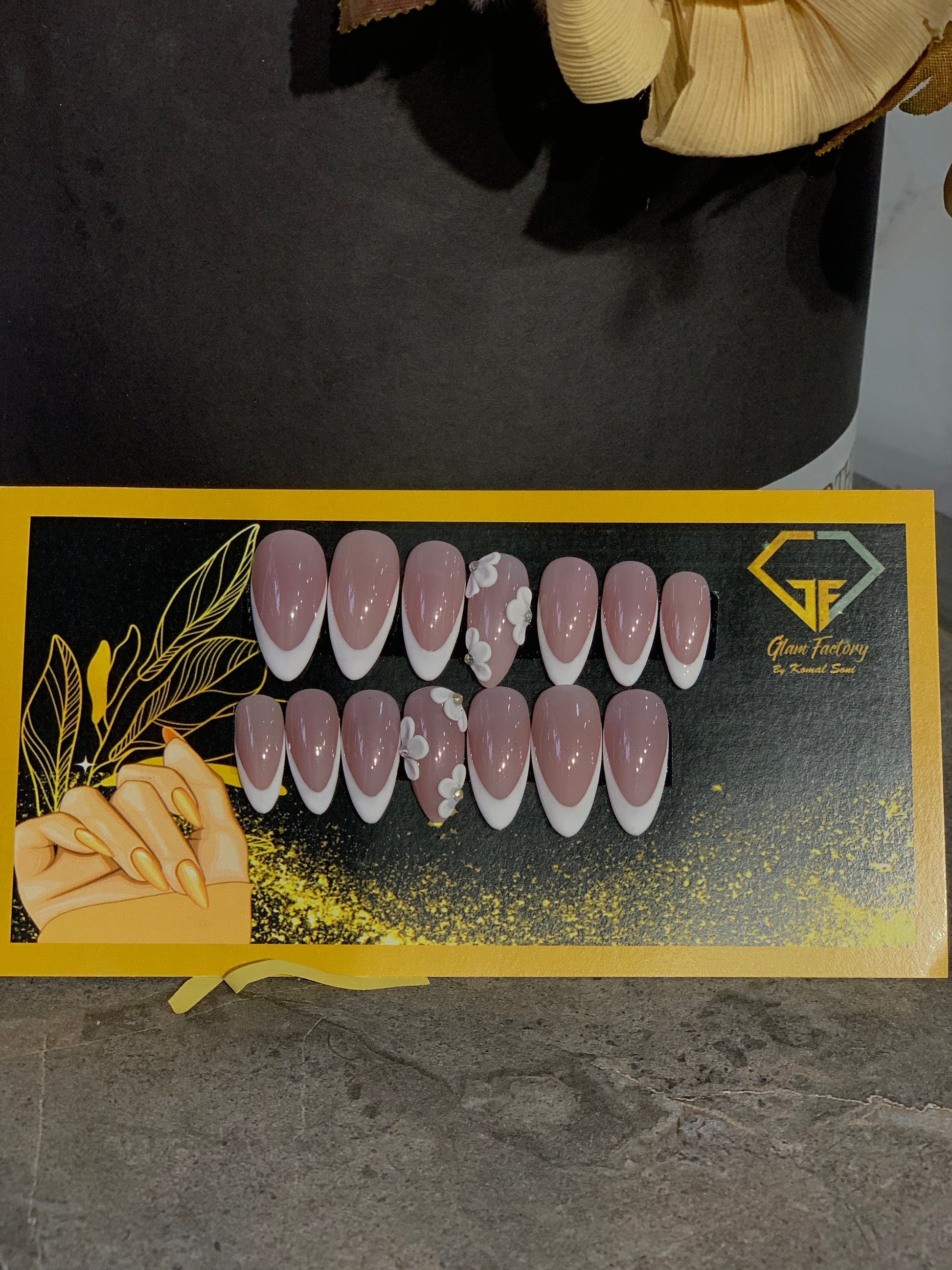 GlamFactory's Press -On Nails: Glam on the Go! Nail Art - French Pearl - Ballerina Introducing GlamFactory's Golden Aura - Almond Shape Press-On Nails. Ready to glam on the go with stunning nail art designs that catch anyone's attention. Perfect for any occasion, these almond-shaped nails will elevate your style effortlessly. Shine bright with Golden Aura nails from GlamFactory. Elevate Your Nail Game with Our New Press-On Nails Collection Say goodbye to long salon visits and hello to instant glamour! Our new collection of press-on nails is designed for those who love to stay stylish and on-the-go. Perfect for busy lifestyles, GlamFactory's press-on nails offer convenience, durability, and stunning designs. Why Choose GlamFactory Press-On Nails? - *Trendy & Classic Designs*: Choose from various styles, from chic minimalistic designs to bold and trendy patterns. - *Easy Application*: Enjoy a salon-quality manicure in minutes with our easy-to-apply press-on nails. - *Long-Lasting*: Made with high-quality materials, our nails are designed to last up to two weeks. - *Travel-Friendly*: Compact and convenient, our kits are perfect for quick touch-ups anywhere, anytime. What’s Included in Each Kit? - *Variety of Nail Sizes & Designs*: Each kit includes multiple sizes to ensure a perfect fit for your nails. - *Nail Adhesives*: Strong, long-lasting adhesives for a secure hold. - *Mini Nail File*: This is for shaping and perfecting your press-on. - *Step-by-Step Guide*: Easy instructions to help you achieve a flawless application. How to Apply 1. *Prep Your Nails*: Clean and shape your natural nails. 2. *Select Your Size*: Choose the press-on nails that best fit your natural nails. 3. *Apply Adhesive*: Place the adhesive on your natural nail. 4. *Press On*: Align the press-on nail with your natural nail and press firmly for 10-15 seconds. 5. *File & Shape*: Use the mini nail file to shape if necessary. Special Launch Offer To celebrate the launch of our new press-on nails, we're offering Launch offers Stay Glamorous, Anytime, Anywhere! With GlamFactory's press-on nails, you can achieve a flawless manicure in minutes. Perfect for any occasion, our press-on nails are your new beauty must-have. Don't miss out on this stylish and convenient nail solution!