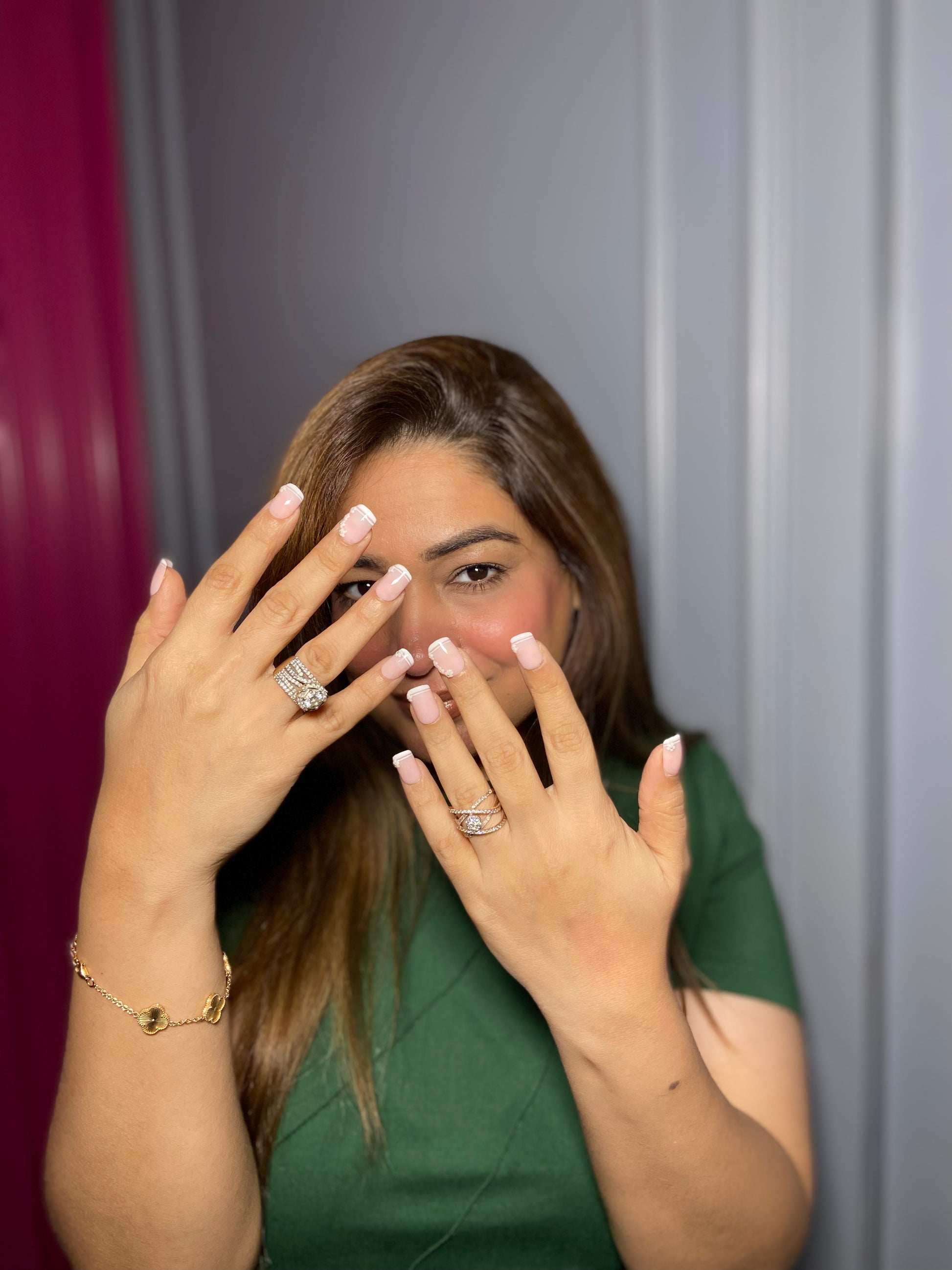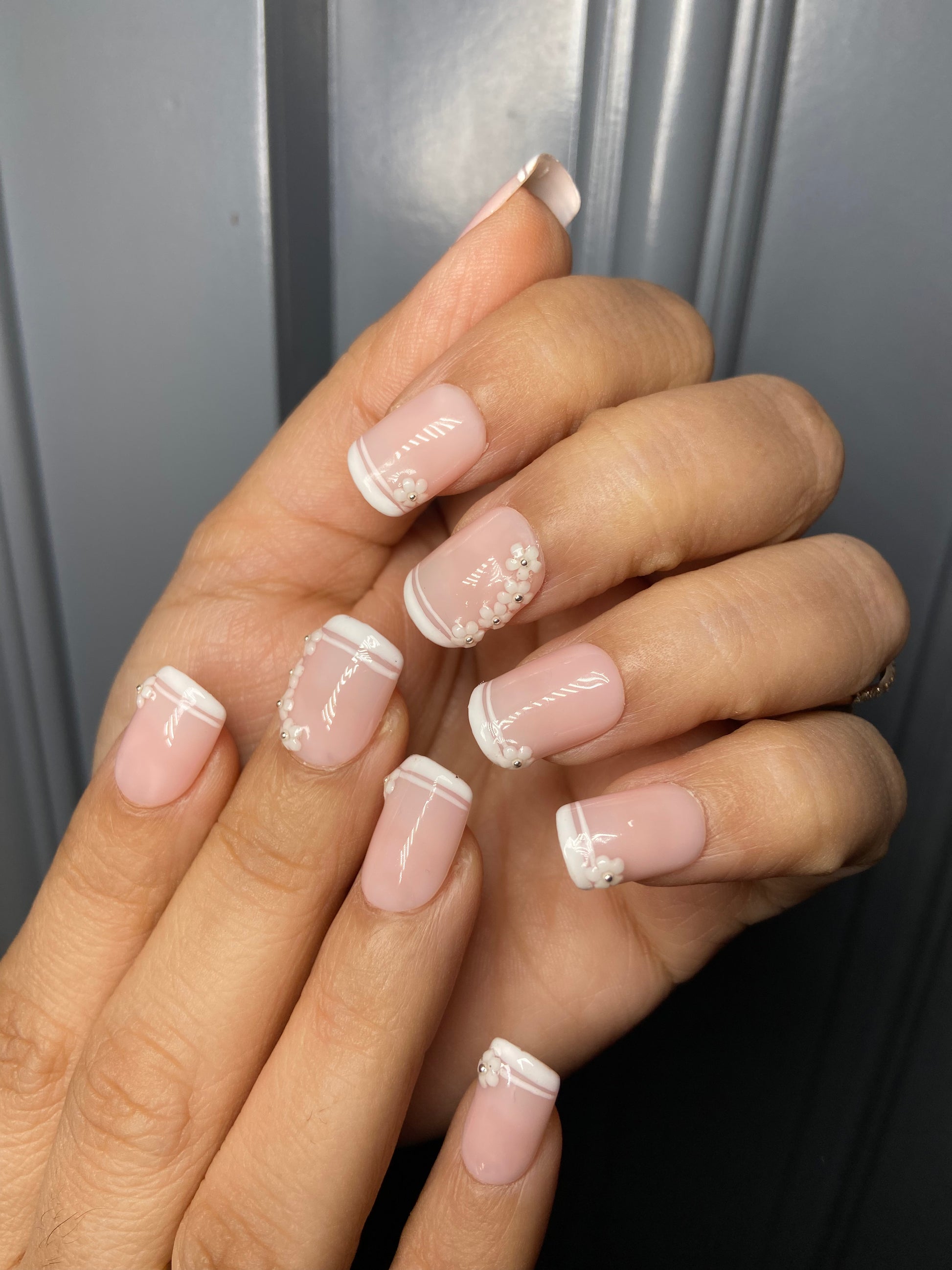 Elegant and timeless, the French Floral Press-On Nails combine the classic beauty of a French manicure with delicate floral detailing for a soft, feminine touch. The clean base and refined tips are enhanced with subtle floral accents, creating a graceful and romantic look. Perfect for everyday wear, weddings, or special occasions, these nails deliver a salon-quality manicure in minutes. Crafted from premium, long-lasting material, they are easy to apply, comfortable to wear, and reusableâbringing effortless elegance and charm to your nails anytime.