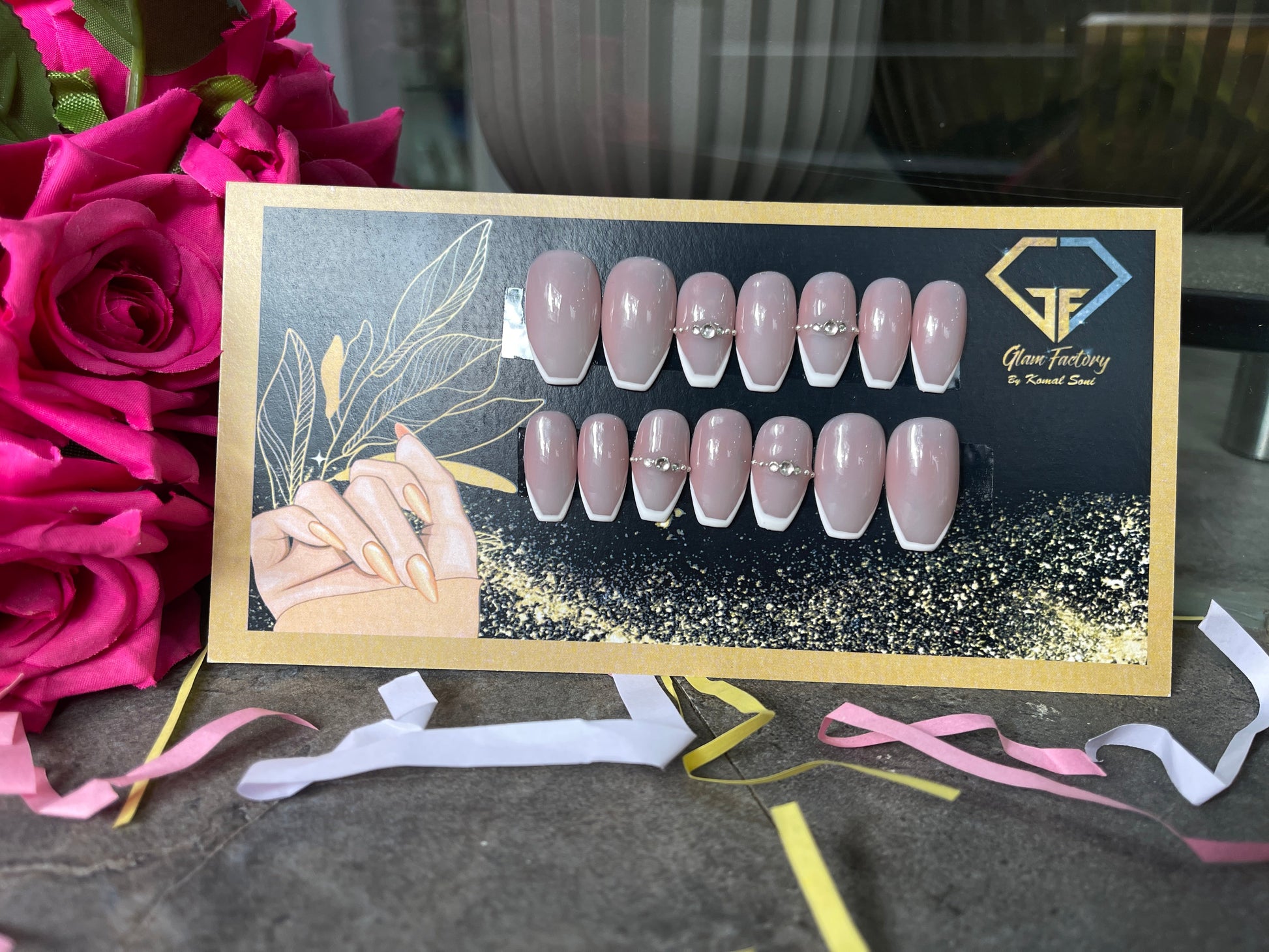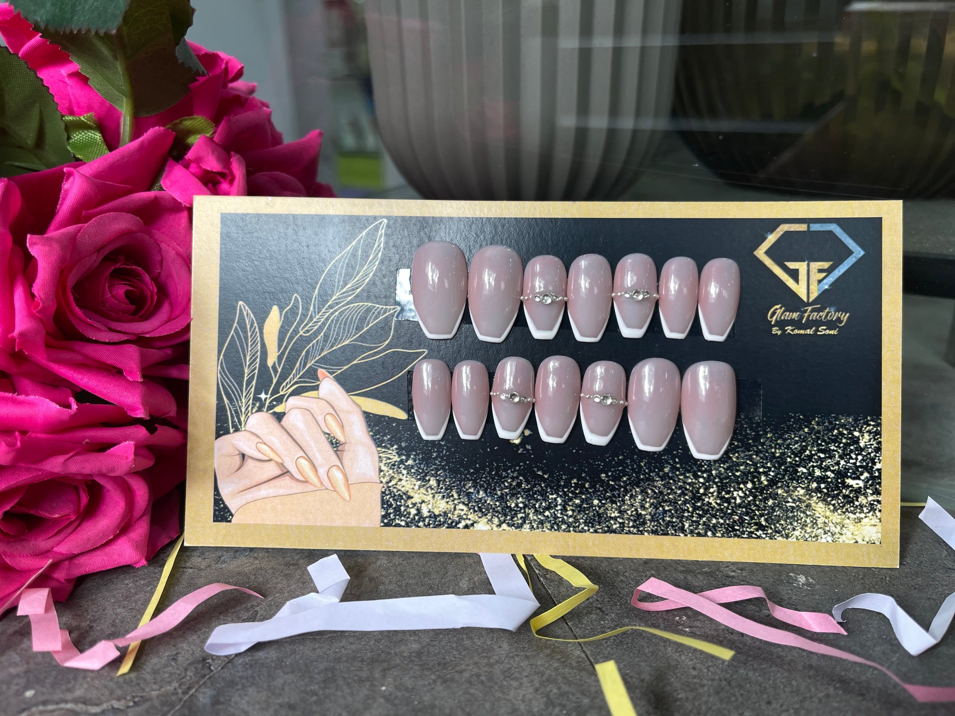GlamFactory's Press -On Nails: Glam on the Go! Nail Art - French Pearl - Ballerina Introducing GlamFactory's Golden Aura - Almond Shape Press-On Nails. Ready to glam on the go with stunning nail art designs that catch anyone's attention. Perfect for any occasion, these almond-shaped nails will elevate your style effortlessly. Shine bright with Golden Aura nails from GlamFactory. Elevate Your Nail Game with Our New Press-On Nails Collection Say goodbye to long salon visits and hello to instant glamour! Our new collection of press-on nails is designed for those who love to stay stylish and on-the-go. Perfect for busy lifestyles, GlamFactory's press-on nails offer convenience, durability, and stunning designs. Why Choose GlamFactory Press-On Nails? - *Trendy & Classic Designs*: Choose from various styles, from chic minimalistic designs to bold and trendy patterns. - *Easy Application*: Enjoy a salon-quality manicure in minutes with our easy-to-apply press-on nails. - *Long-Lasting*: Made with high-quality materials, our nails are designed to last up to two weeks. - *Travel-Friendly*: Compact and convenient, our kits are perfect for quick touch-ups anywhere, anytime. What’s Included in Each Kit? - *Variety of Nail Sizes & Designs*: Each kit includes multiple sizes to ensure a perfect fit for your nails. - *Nail Adhesives*: Strong, long-lasting adhesives for a secure hold. - *Mini Nail File*: This is for shaping and perfecting your press-on. - *Step-by-Step Guide*: Easy instructions to help you achieve a flawless application. How to Apply 1. *Prep Your Nails*: Clean and shape your natural nails. 2. *Select Your Size*: Choose the press-on nails that best fit your natural nails. 3. *Apply Adhesive*: Place the adhesive on your natural nail. 4. *Press On*: Align the press-on nail with your natural nail and press firmly for 10-15 seconds. 5. *File & Shape*: Use the mini nail file to shape if necessary. Special Launch Offer To celebrate the launch of our new press-on nails, we're offering Launch offers Stay Glamorous, Anytime, Anywhere! With GlamFactory's press-on nails, you can achieve a flawless manicure in minutes. Perfect for any occasion, our press-on nails are your new beauty must-have. Don't miss out on this stylish and convenient nail solution!