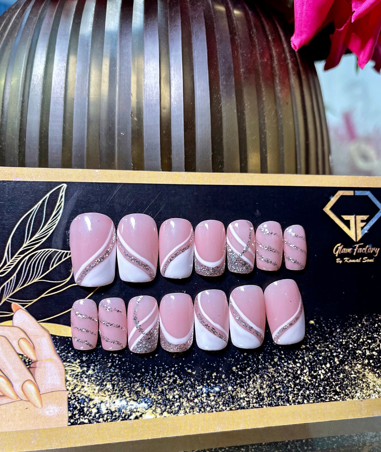 GlamFactory's Press -On Nails: Glam on the Go! Nail Art - French Pearl - Ballerina Introducing GlamFactory's Golden Aura - Almond Shape Press-On Nails. Ready to glam on the go with stunning nail art designs that catch anyone's attention. Perfect for any occasion, these almond-shaped nails will elevate your style effortlessly. Shine bright with Golden Aura nails from GlamFactory. Elevate Your Nail Game with Our New Press-On Nails Collection Say goodbye to long salon visits and hello to instant glamour! Our new collection of press-on nails is designed for those who love to stay stylish and on-the-go. Perfect for busy lifestyles, GlamFactory's press-on nails offer convenience, durability, and stunning designs. Why Choose GlamFactory Press-On Nails? - *Trendy & Classic Designs*: Choose from various styles, from chic minimalistic designs to bold and trendy patterns. - *Easy Application*: Enjoy a salon-quality manicure in minutes with our easy-to-apply press-on nails. - *Long-Lasting*: Made with high-quality materials, our nails are designed to last up to two weeks. - *Travel-Friendly*: Compact and convenient, our kits are perfect for quick touch-ups anywhere, anytime. What’s Included in Each Kit? - *Variety of Nail Sizes & Designs*: Each kit includes multiple sizes to ensure a perfect fit for your nails. - *Nail Adhesives*: Strong, long-lasting adhesives for a secure hold. - *Mini Nail File*: This is for shaping and perfecting your press-on. - *Step-by-Step Guide*: Easy instructions to help you achieve a flawless application. How to Apply 1. *Prep Your Nails*: Clean and shape your natural nails. 2. *Select Your Size*: Choose the press-on nails that best fit your natural nails. 3. *Apply Adhesive*: Place the adhesive on your natural nail. 4. *Press On*: Align the press-on nail with your natural nail and press firmly for 10-15 seconds. 5. *File & Shape*: Use the mini nail file to shape if necessary. Special Launch Offer To celebrate the launch of our new press-on nails, we're offering Launch offers Stay Glamorous, Anytime, Anywhere! With GlamFactory's press-on nails, you can achieve a flawless manicure in minutes. Perfect for any occasion, our press-on nails are your new beauty must-have. Don't miss out on this stylish and convenient nail solution!