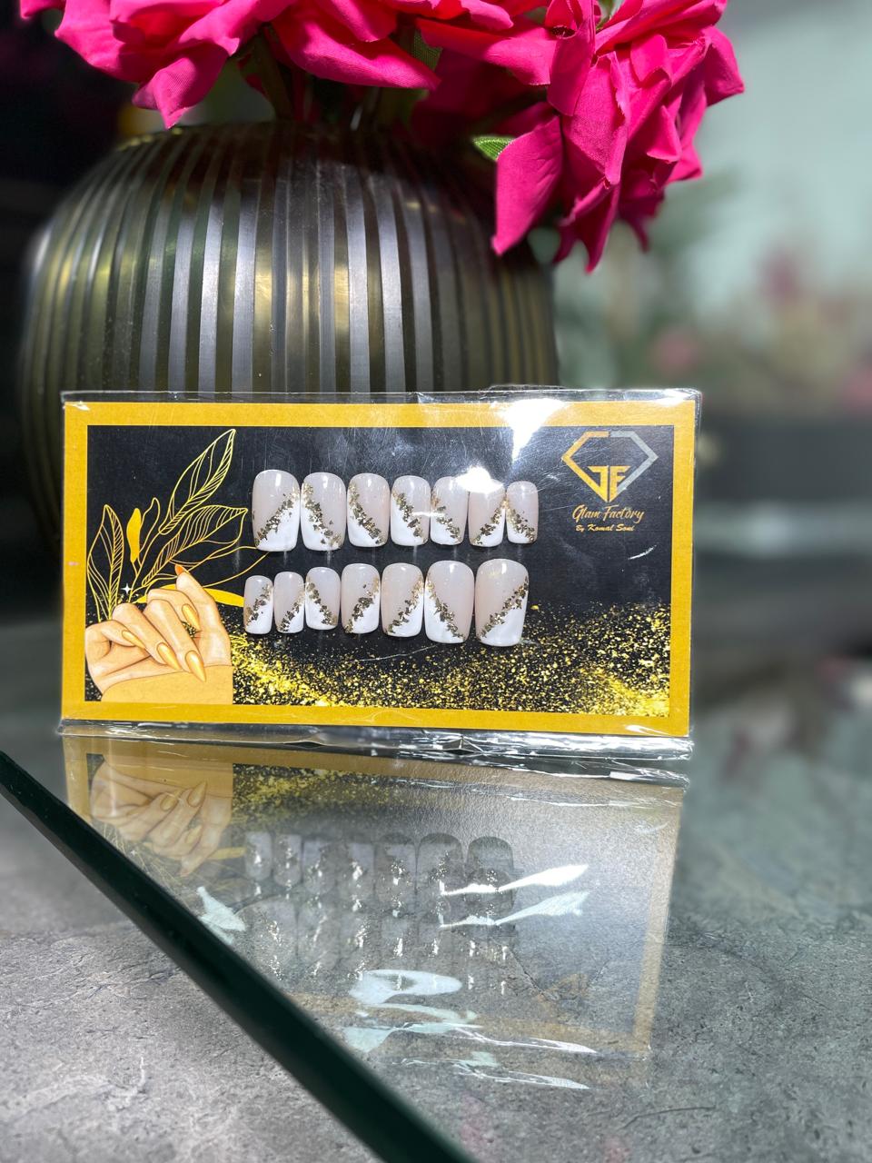 GlamFactory's Press -On Nails: Glam on the Go! Nail Art - French Pearl - Ballerina Introducing GlamFactory's Golden Aura - Almond Shape Press-On Nails. Ready to glam on the go with stunning nail art designs that catch anyone's attention. Perfect for any occasion, these almond-shaped nails will elevate your style effortlessly. Shine bright with Golden Aura nails from GlamFactory. Elevate Your Nail Game with Our New Press-On Nails Collection Say goodbye to long salon visits and hello to instant glamour! Our new collection of press-on nails is designed for those who love to stay stylish and on-the-go. Perfect for busy lifestyles, GlamFactory's press-on nails offer convenience, durability, and stunning designs. Why Choose GlamFactory Press-On Nails? - *Trendy & Classic Designs*: Choose from various styles, from chic minimalistic designs to bold and trendy patterns. - *Easy Application*: Enjoy a salon-quality manicure in minutes with our easy-to-apply press-on nails. - *Long-Lasting*: Made with high-quality materials, our nails are designed to last up to two weeks. - *Travel-Friendly*: Compact and convenient, our kits are perfect for quick touch-ups anywhere, anytime. What’s Included in Each Kit? - *Variety of Nail Sizes & Designs*: Each kit includes multiple sizes to ensure a perfect fit for your nails. - *Nail Adhesives*: Strong, long-lasting adhesives for a secure hold. - *Mini Nail File*: This is for shaping and perfecting your press-on. - *Step-by-Step Guide*: Easy instructions to help you achieve a flawless application. How to Apply 1. *Prep Your Nails*: Clean and shape your natural nails. 2. *Select Your Size*: Choose the press-on nails that best fit your natural nails. 3. *Apply Adhesive*: Place the adhesive on your natural nail. 4. *Press On*: Align the press-on nail with your natural nail and press firmly for 10-15 seconds. 5. *File & Shape*: Use the mini nail file to shape if necessary. Special Launch Offer To celebrate the launch of our new press-on nails, we're offering Launch offers Stay Glamorous, Anytime, Anywhere! With GlamFactory's press-on nails, you can achieve a flawless manicure in minutes. Perfect for any occasion, our press-on nails are your new beauty must-have. Don't miss out on this stylish and convenient nail solution!
