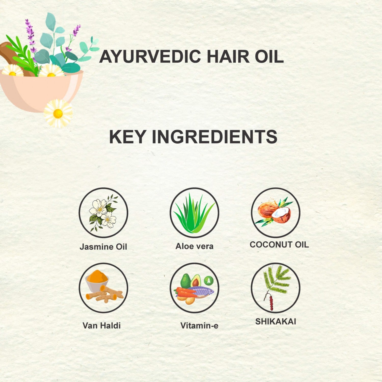 - First, take a few drops of our gorgeous Ayurvedic oil and massage it onto your scalp followed by your hair length.
