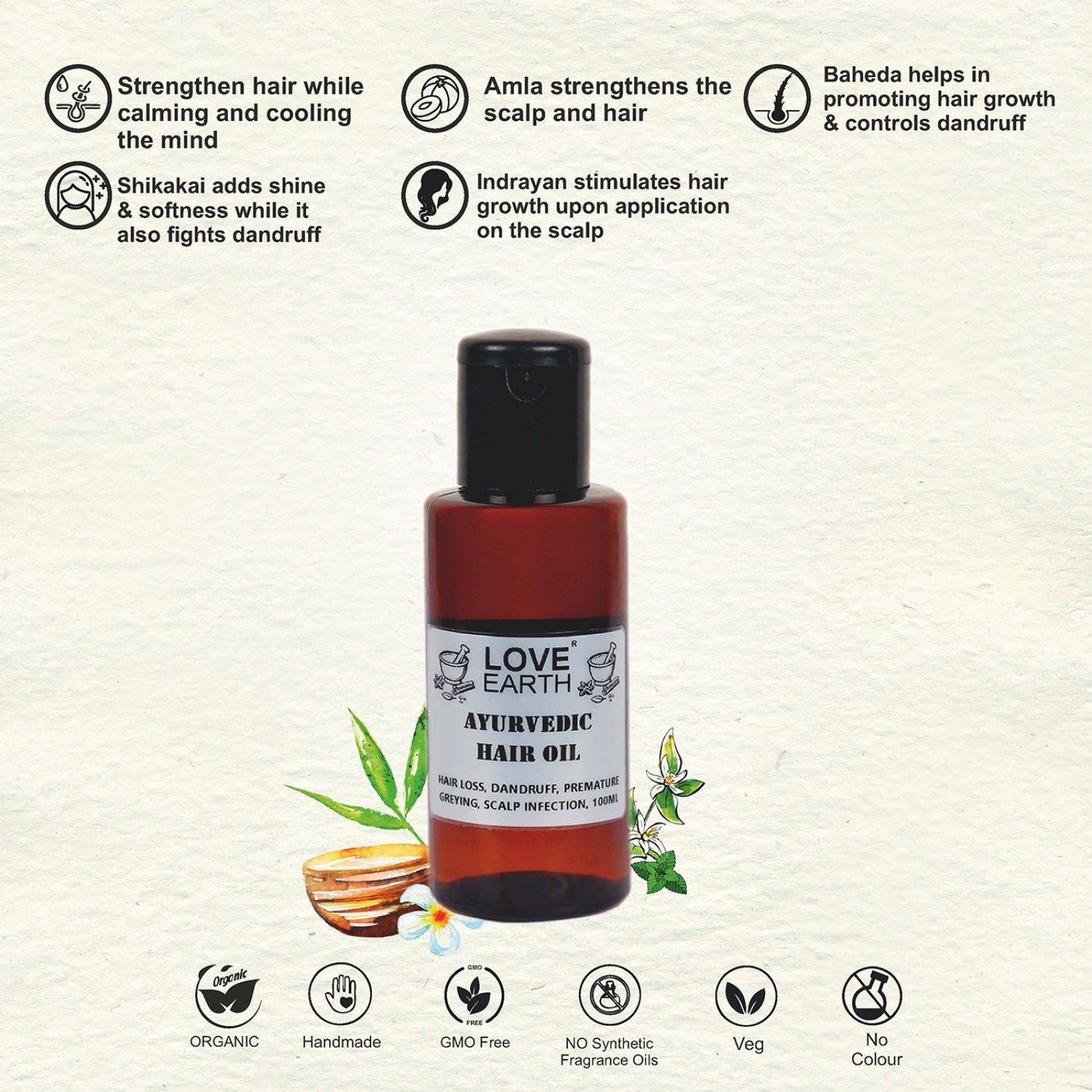 The most beautiful Ayurvedic Hair Oil from Love earth is here to reset your fragile hair. Filled with nature's kindness, our product is a blend of nourishing oils such as coconut oil and sesame oil, and some more. It makes hair strong from the inside & shinier on the outside. It is very safe for all kinds of hair, even chemically treated hair. It nourishes almost everything. You will have your scalp back to that health that it should have had from the start in no time. It is made from all-natural organic ingredients, the oil does not do any harm. The Love Earth Ayurvedic Oil is completely free of sulphates, Paraben, SLS, and all those bad chemicals. This can be used on all scalp types and with all age groups.