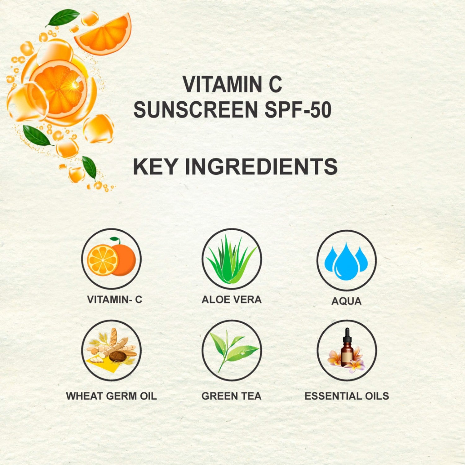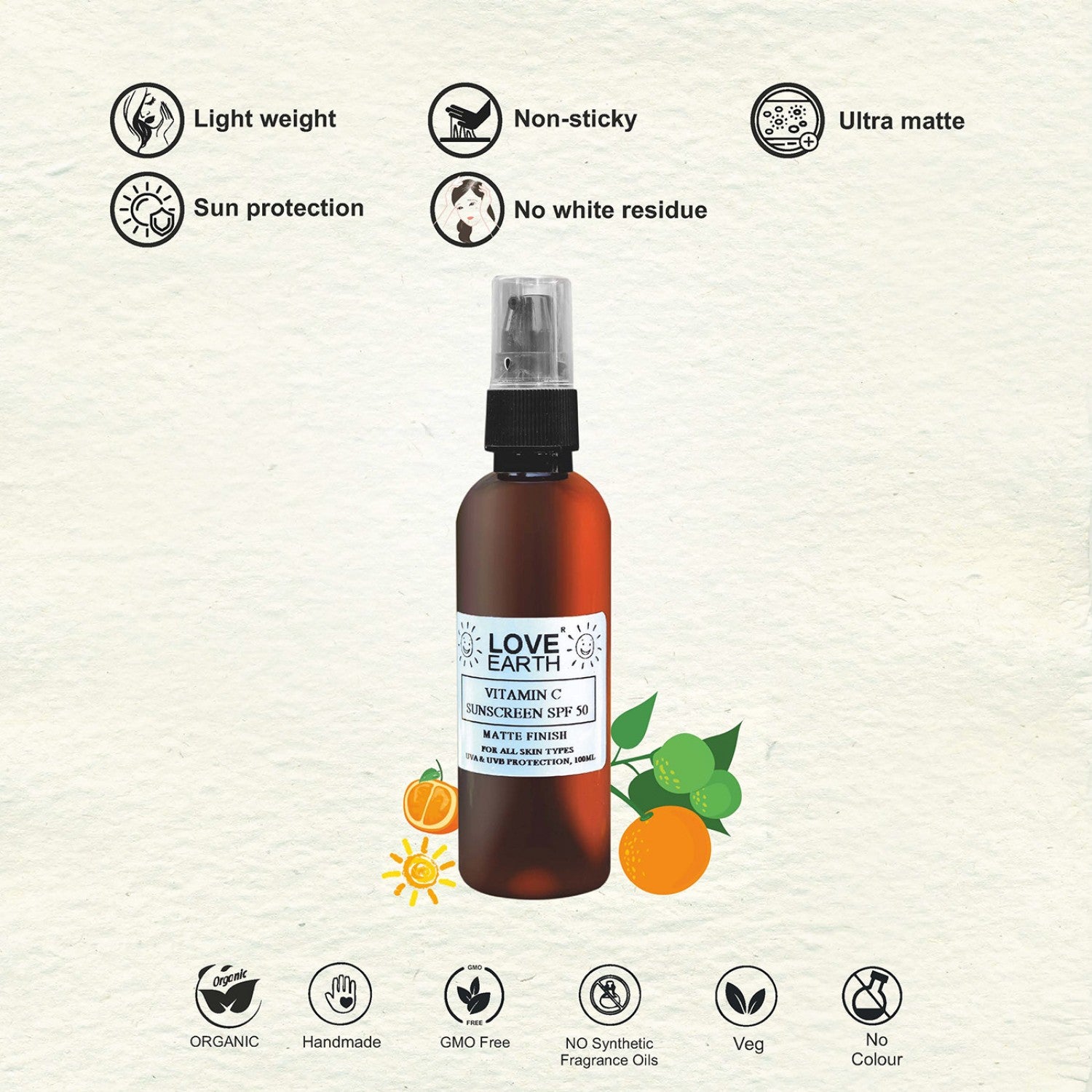 - The Vitamin C Sunscreen SPF-50 from Love Earth efficiently reduces any chances of you getting any kind of sunburn. It furiously protects collagen and. Research has also proven Vitamin C to aid wound healing if there ever was any.