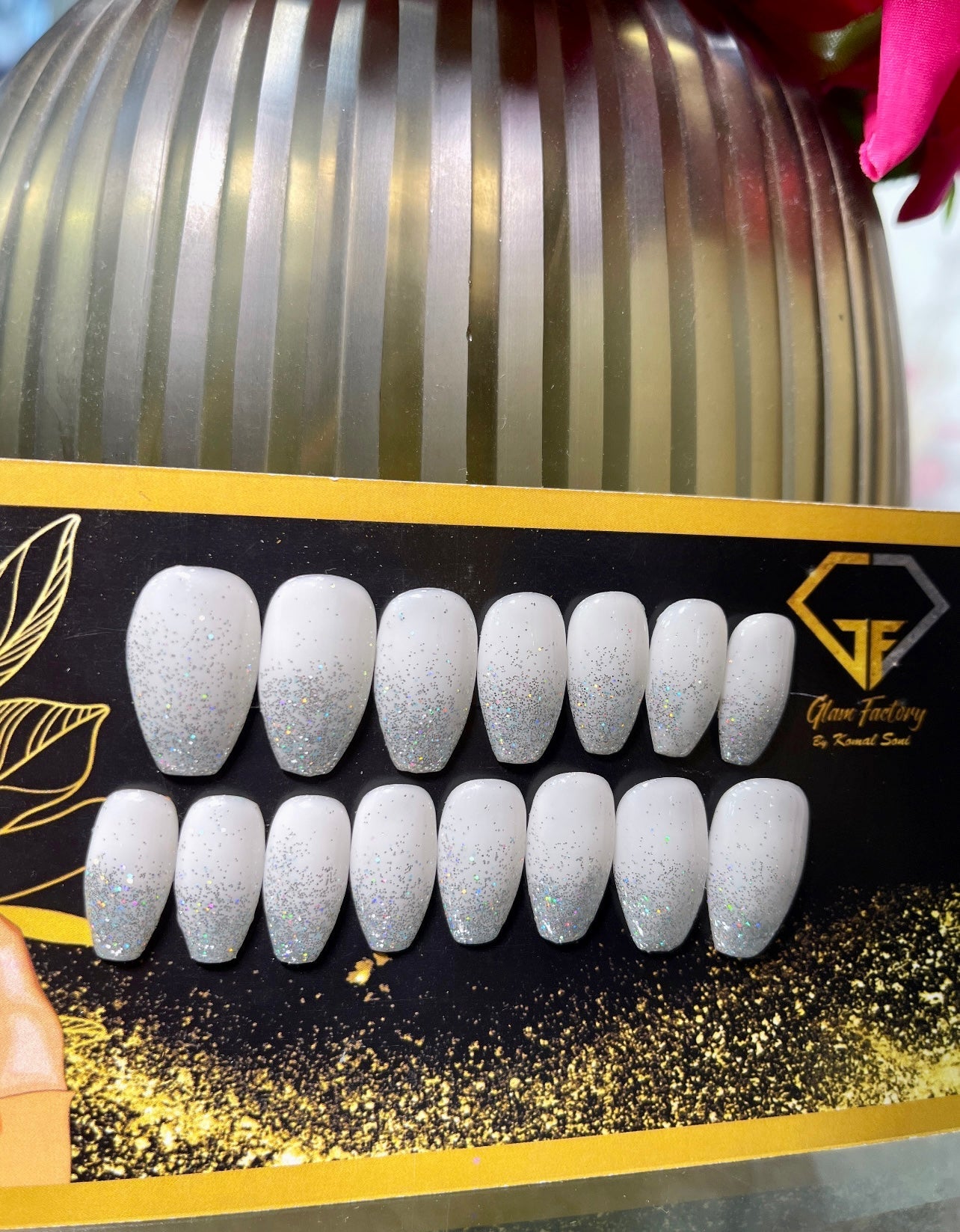 GlamFactory's Press -On Nails: Glam on the Go! Nail Art - French Pearl - Ballerina Introducing GlamFactory's Golden Aura - Almond Shape Press-On Nails. Ready to glam on the go with stunning nail art designs that catch anyone's attention. Perfect for any occasion, these almond-shaped nails will elevate your style effortlessly. Shine bright with Golden Aura nails from GlamFactory. Elevate Your Nail Game with Our New Press-On Nails Collection Say goodbye to long salon visits and hello to instant glamour! Our new collection of press-on nails is designed for those who love to stay stylish and on-the-go. Perfect for busy lifestyles, GlamFactory's press-on nails offer convenience, durability, and stunning designs. Why Choose GlamFactory Press-On Nails? - *Trendy & Classic Designs*: Choose from various styles, from chic minimalistic designs to bold and trendy patterns. - *Easy Application*: Enjoy a salon-quality manicure in minutes with our easy-to-apply press-on nails. - *Long-Lasting*: Made with high-quality materials, our nails are designed to last up to two weeks. - *Travel-Friendly*: Compact and convenient, our kits are perfect for quick touch-ups anywhere, anytime. What’s Included in Each Kit? - *Variety of Nail Sizes & Designs*: Each kit includes multiple sizes to ensure a perfect fit for your nails. - *Nail Adhesives*: Strong, long-lasting adhesives for a secure hold. - *Mini Nail File*: This is for shaping and perfecting your press-on. - *Step-by-Step Guide*: Easy instructions to help you achieve a flawless application. How to Apply 1. *Prep Your Nails*: Clean and shape your natural nails. 2. *Select Your Size*: Choose the press-on nails that best fit your natural nails. 3. *Apply Adhesive*: Place the adhesive on your natural nail. 4. *Press On*: Align the press-on nail with your natural nail and press firmly for 10-15 seconds. 5. *File & Shape*: Use the mini nail file to shape if necessary. Special Launch Offer To celebrate the launch of our new press-on nails, we're offering Launch offers Stay Glamorous, Anytime, Anywhere! With GlamFactory's press-on nails, you can achieve a flawless manicure in minutes. Perfect for any occasion, our press-on nails are your new beauty must-have. Don't miss out on this stylish and convenient nail solution!
