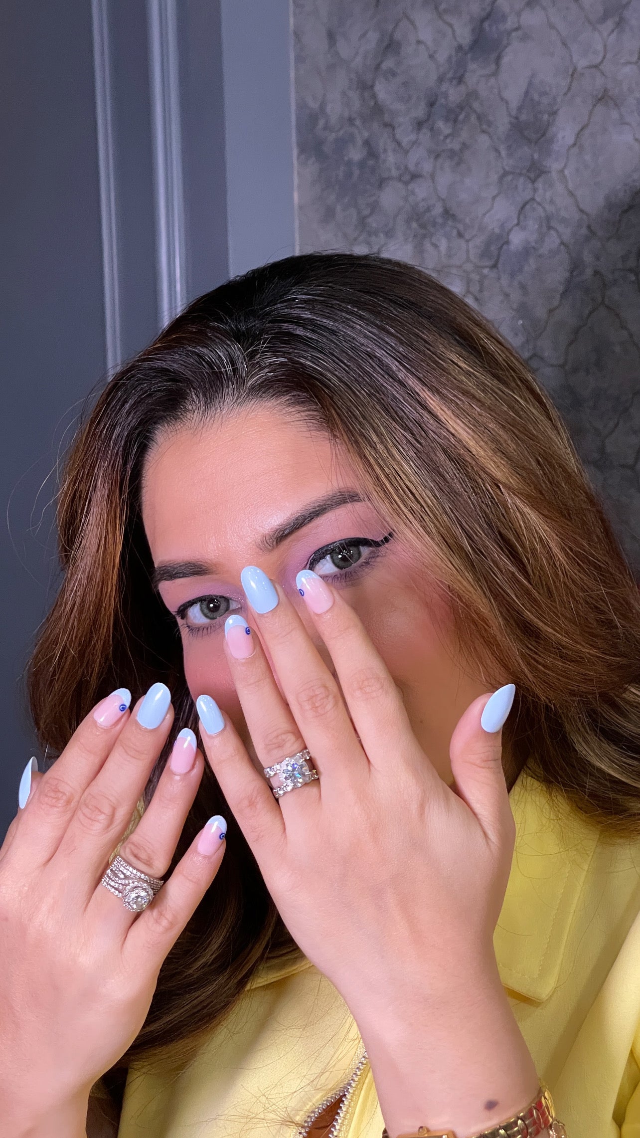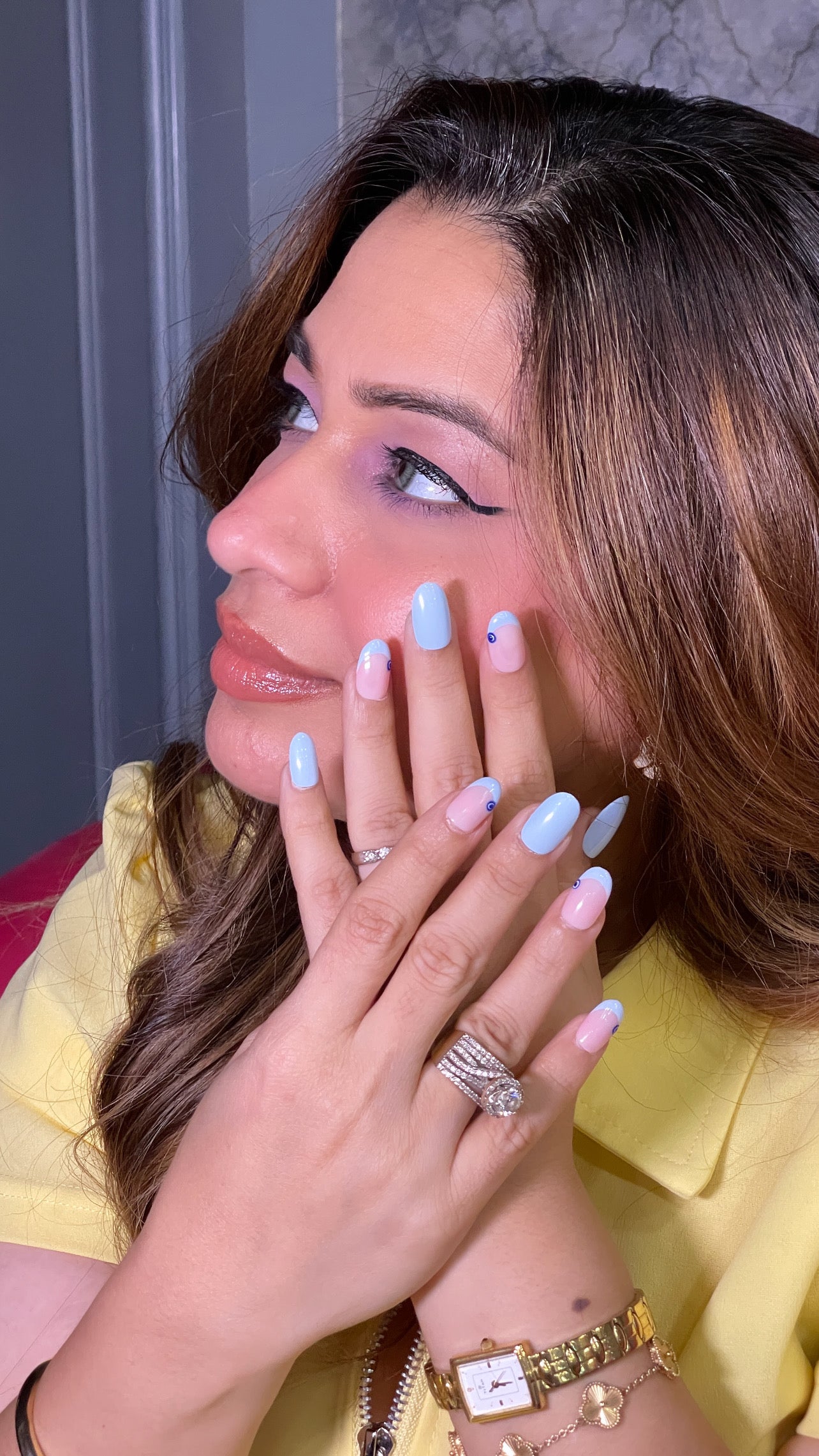 Nazar Babe Oval nails from The Nail Factory feature a distinctive evil-eye inspired detail on a soft oval shape for a look that’s playful and stylish. The glossy finish enhances the neat design, while the rounded tip keeps it comfortable for everyday wear. Unique and charming, this style pairs effortlessly with both casual and statement outfits.