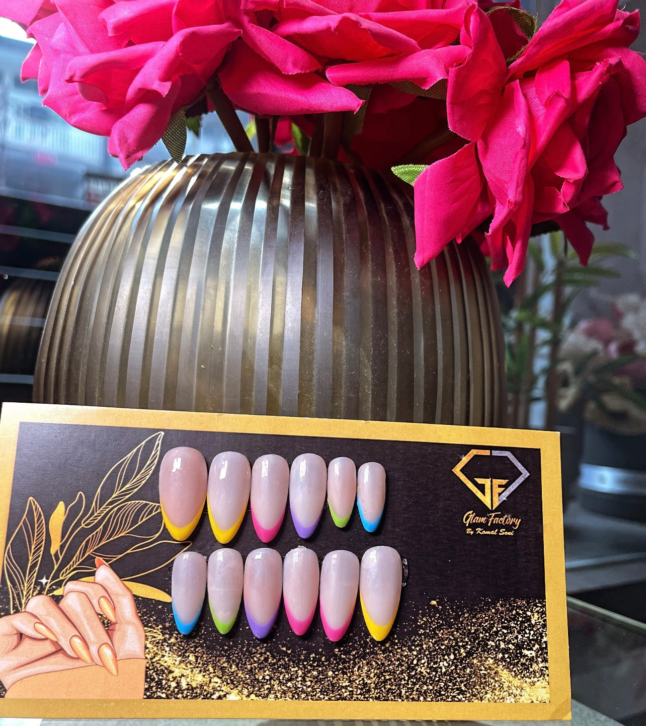 GlamFactory's Press -On Nails: Glam on the Go! Nail Art - French Pearl - Ballerina Introducing GlamFactory's Golden Aura - Almond Shape Press-On Nails. Ready to glam on the go with stunning nail art designs that catch anyone's attention. Perfect for any occasion, these almond-shaped nails will elevate your style effortlessly. Shine bright with Golden Aura nails from GlamFactory. Elevate Your Nail Game with Our New Press-On Nails Collection Say goodbye to long salon visits and hello to instant glamour! Our new collection of press-on nails is designed for those who love to stay stylish and on-the-go. Perfect for busy lifestyles, GlamFactory's press-on nails offer convenience, durability, and stunning designs. Why Choose GlamFactory Press-On Nails? - *Trendy & Classic Designs*: Choose from various styles, from chic minimalistic designs to bold and trendy patterns. - *Easy Application*: Enjoy a salon-quality manicure in minutes with our easy-to-apply press-on nails. - *Long-Lasting*: Made with high-quality materials, our nails are designed to last up to two weeks. - *Travel-Friendly*: Compact and convenient, our kits are perfect for quick touch-ups anywhere, anytime. What’s Included in Each Kit? - *Variety of Nail Sizes & Designs*: Each kit includes multiple sizes to ensure a perfect fit for your nails. - *Nail Adhesives*: Strong, long-lasting adhesives for a secure hold. - *Mini Nail File*: This is for shaping and perfecting your press-on. - *Step-by-Step Guide*: Easy instructions to help you achieve a flawless application. How to Apply 1. *Prep Your Nails*: Clean and shape your natural nails. 2. *Select Your Size*: Choose the press-on nails that best fit your natural nails. 3. *Apply Adhesive*: Place the adhesive on your natural nail. 4. *Press On*: Align the press-on nail with your natural nail and press firmly for 10-15 seconds. 5. *File & Shape*: Use the mini nail file to shape if necessary. Special Launch Offer To celebrate the launch of our new press-on nails, we're offering Launch offers Stay Glamorous, Anytime, Anywhere! With GlamFactory's press-on nails, you can achieve a flawless manicure in minutes. Perfect for any occasion, our press-on nails are your new beauty must-have. Don't miss out on this stylish and convenient nail solution!