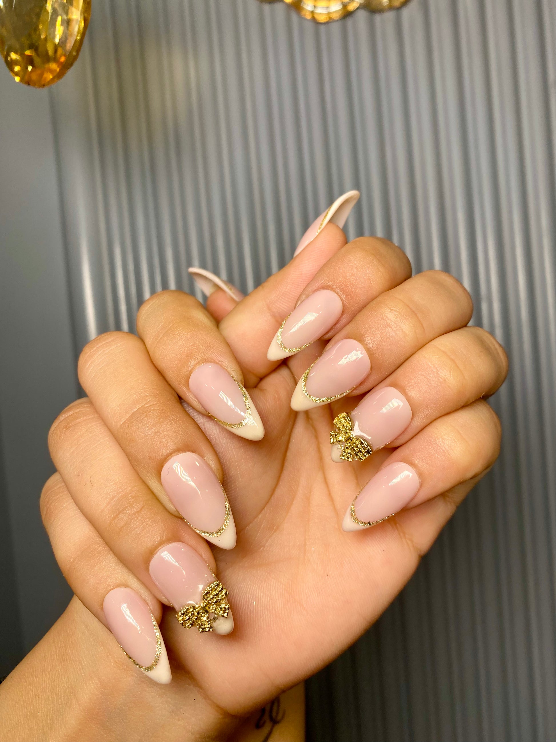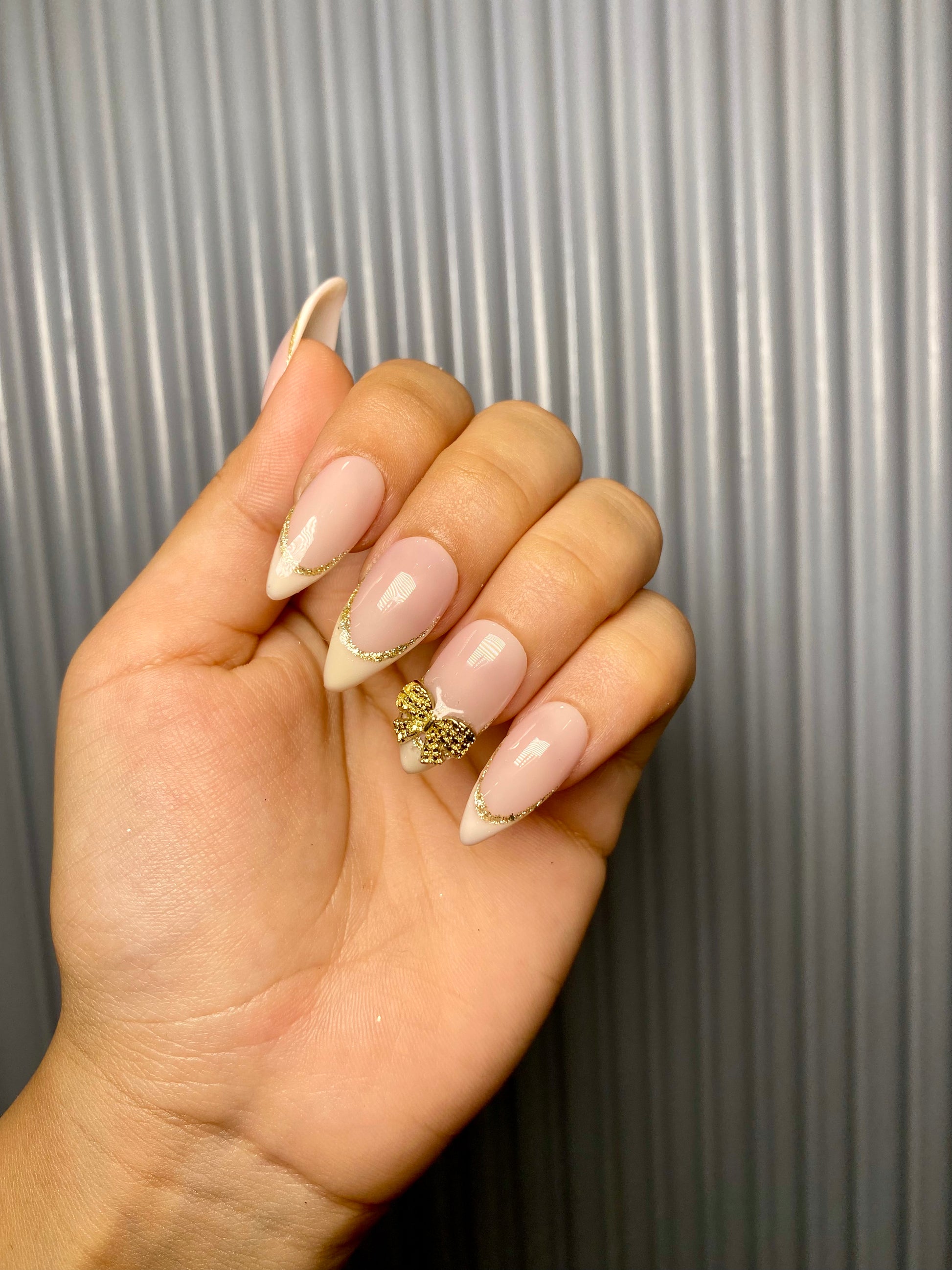 Soft, graceful, and beautifully feminine, the Nude Bow French Press-On Nails feature a classic nude base paired with elegant French tips and delicate bow detailing for a charming, refined look. The subtle design adds a touch of sweetness while maintaining a clean, sophisticated finish, making these nails perfect for everyday wear, bridal looks, or special occasions. Designed for a natural, flattering fit, they deliver a salon-quality manicure in minutes. Crafted from premium, long-lasting material, these press-on nails are easy to apply, comfortable to wear, and reusable for effortless elegance anytime.
