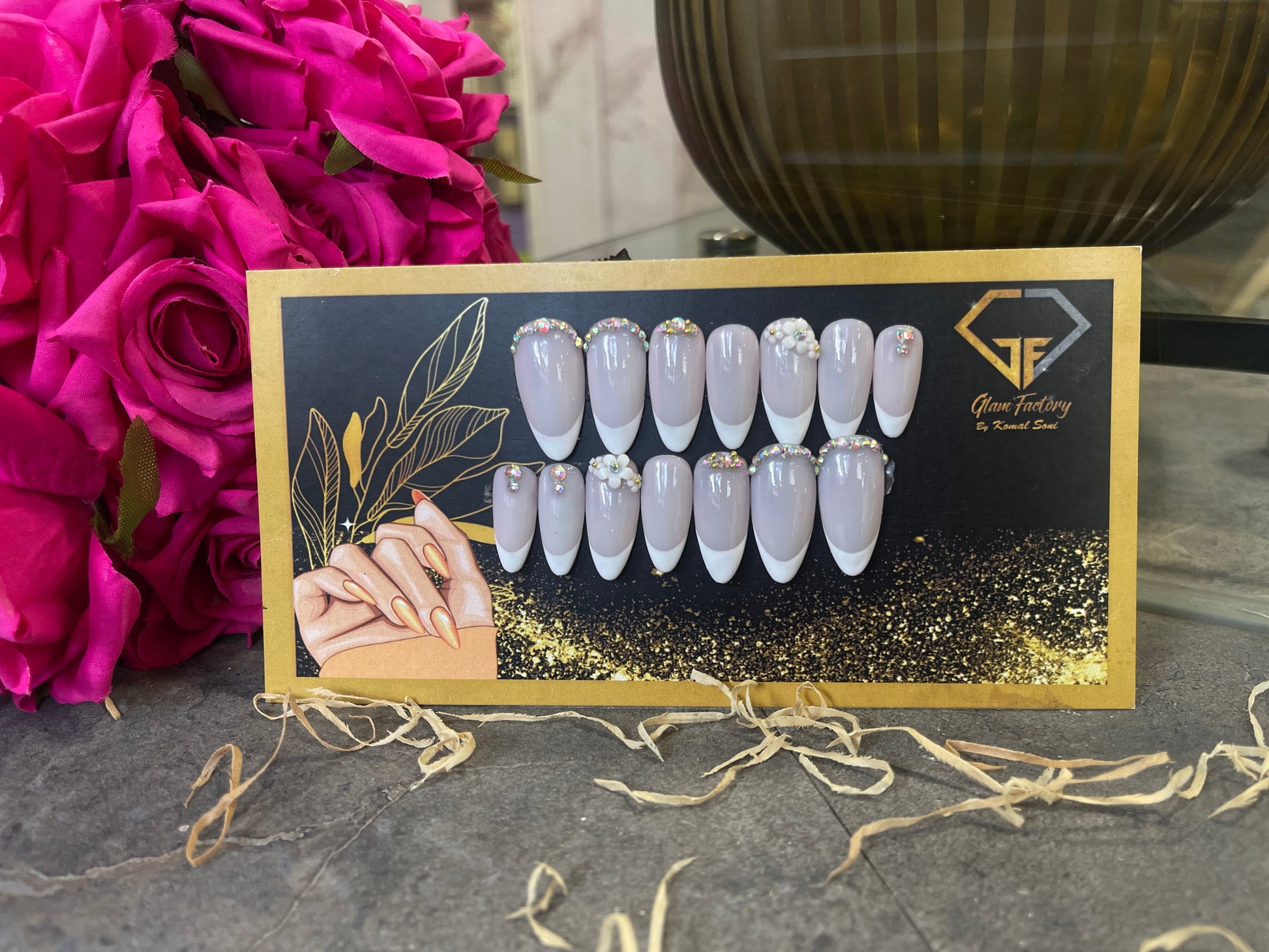 GlamFactory's Press -On Nails: Glam on the Go! Nail Art - French Pearl - Ballerina Introducing GlamFactory's Golden Aura - Almond Shape Press-On Nails. Ready to glam on the go with stunning nail art designs that catch anyone's attention. Perfect for any occasion, these almond-shaped nails will elevate your style effortlessly. Shine bright with Golden Aura nails from GlamFactory. Elevate Your Nail Game with Our New Press-On Nails Collection Say goodbye to long salon visits and hello to instant glamour! Our new collection of press-on nails is designed for those who love to stay stylish and on-the-go. Perfect for busy lifestyles, GlamFactory's press-on nails offer convenience, durability, and stunning designs. Why Choose GlamFactory Press-On Nails? - *Trendy & Classic Designs*: Choose from various styles, from chic minimalistic designs to bold and trendy patterns. - *Easy Application*: Enjoy a salon-quality manicure in minutes with our easy-to-apply press-on nails. - *Long-Lasting*: Made with high-quality materials, our nails are designed to last up to two weeks. - *Travel-Friendly*: Compact and convenient, our kits are perfect for quick touch-ups anywhere, anytime. What’s Included in Each Kit? - *Variety of Nail Sizes & Designs*: Each kit includes multiple sizes to ensure a perfect fit for your nails. - *Nail Adhesives*: Strong, long-lasting adhesives for a secure hold. - *Mini Nail File*: This is for shaping and perfecting your press-on. - *Step-by-Step Guide*: Easy instructions to help you achieve a flawless application. How to Apply 1. *Prep Your Nails*: Clean and shape your natural nails. 2. *Select Your Size*: Choose the press-on nails that best fit your natural nails. 3. *Apply Adhesive*: Place the adhesive on your natural nail. 4. *Press On*: Align the press-on nail with your natural nail and press firmly for 10-15 seconds. 5. *File & Shape*: Use the mini nail file to shape if necessary. Special Launch Offer To celebrate the launch of our new press-on nails, we're offering Launch offers Stay Glamorous, Anytime, Anywhere! With GlamFactory's press-on nails, you can achieve a flawless manicure in minutes. Perfect for any occasion, our press-on nails are your new beauty must-have. Don't miss out on this stylish and convenient nail solution!
