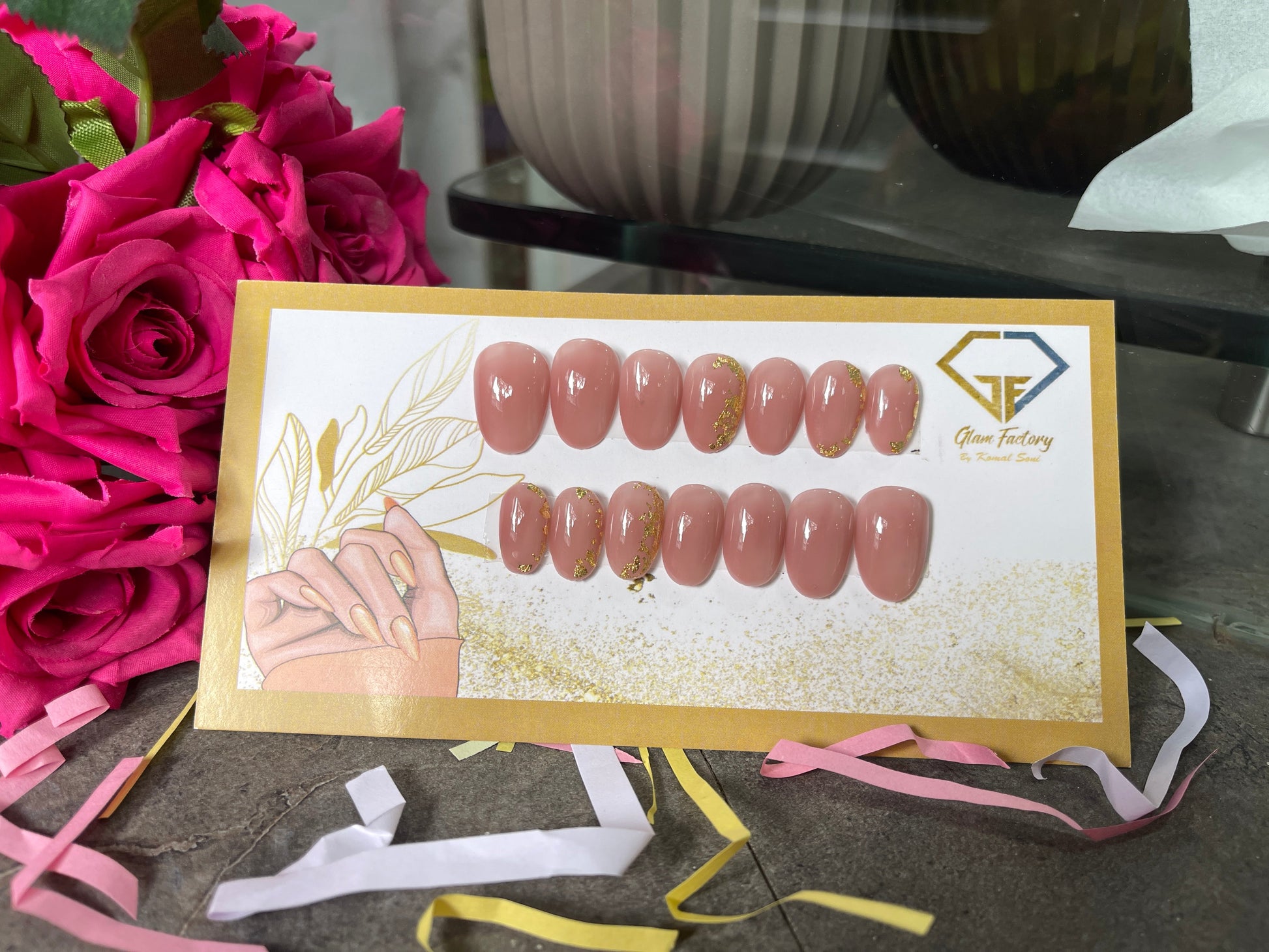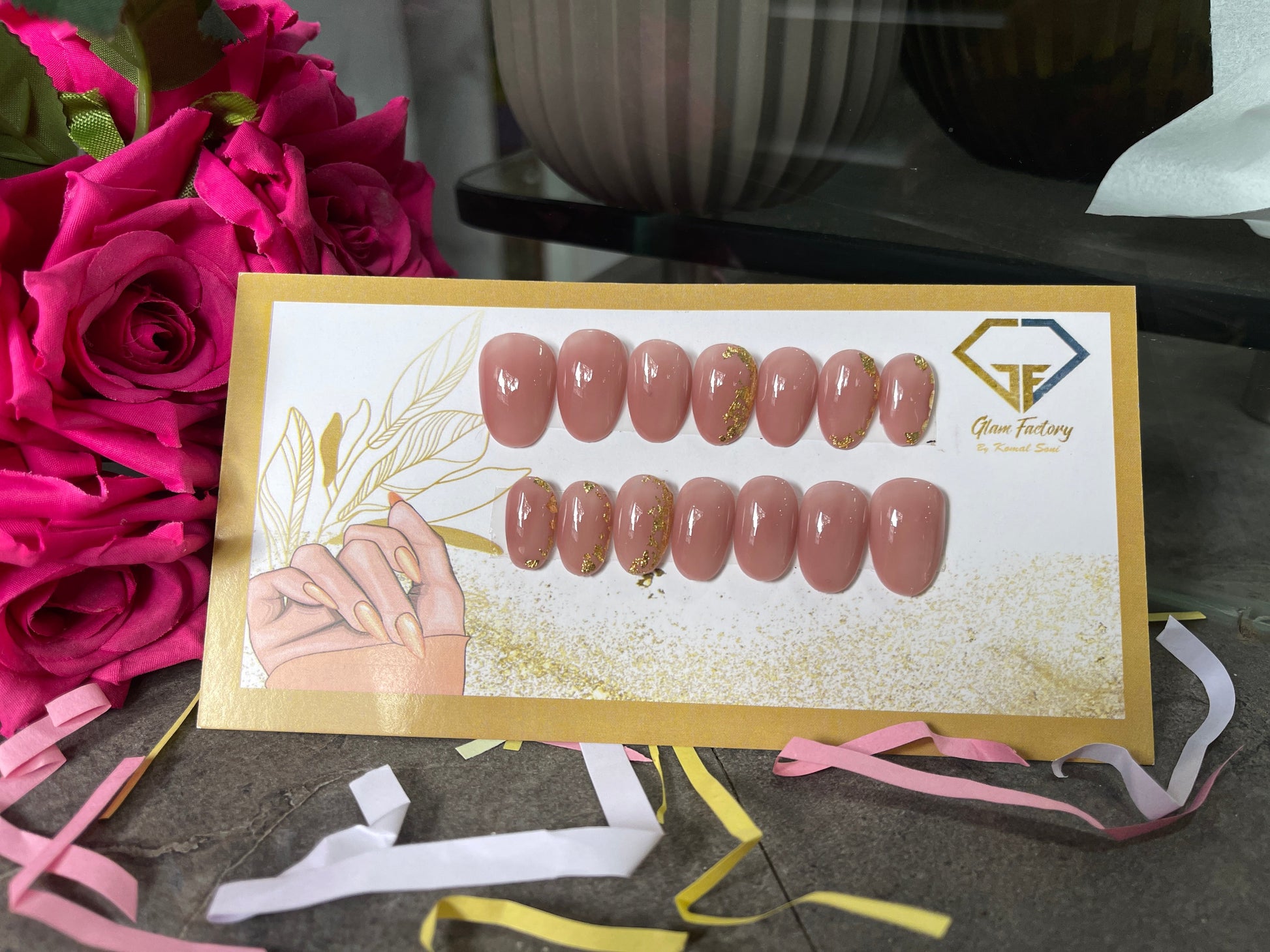 GlamFactory's Press -On Nails: Glam on the Go! Nail Art - French Pearl - Ballerina Introducing GlamFactory's Golden Aura - Almond Shape Press-On Nails. Ready to glam on the go with stunning nail art designs that catch anyone's attention. Perfect for any occasion, these almond-shaped nails will elevate your style effortlessly. Shine bright with Golden Aura nails from GlamFactory. Elevate Your Nail Game with Our New Press-On Nails Collection Say goodbye to long salon visits and hello to instant glamour! Our new collection of press-on nails is designed for those who love to stay stylish and on-the-go. Perfect for busy lifestyles, GlamFactory's press-on nails offer convenience, durability, and stunning designs. Why Choose GlamFactory Press-On Nails? - *Trendy & Classic Designs*: Choose from various styles, from chic minimalistic designs to bold and trendy patterns. - *Easy Application*: Enjoy a salon-quality manicure in minutes with our easy-to-apply press-on nails. - *Long-Lasting*: Made with high-quality materials, our nails are designed to last up to two weeks. - *Travel-Friendly*: Compact and convenient, our kits are perfect for quick touch-ups anywhere, anytime. What’s Included in Each Kit? - *Variety of Nail Sizes & Designs*: Each kit includes multiple sizes to ensure a perfect fit for your nails. - *Nail Adhesives*: Strong, long-lasting adhesives for a secure hold. - *Mini Nail File*: This is for shaping and perfecting your press-on. - *Step-by-Step Guide*: Easy instructions to help you achieve a flawless application. How to Apply 1. *Prep Your Nails*: Clean and shape your natural nails. 2. *Select Your Size*: Choose the press-on nails that best fit your natural nails. 3. *Apply Adhesive*: Place the adhesive on your natural nail. 4. *Press On*: Align the press-on nail with your natural nail and press firmly for 10-15 seconds. 5. *File & Shape*: Use the mini nail file to shape if necessary. Special Launch Offer To celebrate the launch of our new press-on nails, we're offering Launch offers Stay Glamorous, Anytime, Anywhere! With GlamFactory's press-on nails, you can achieve a flawless manicure in minutes. Perfect for any occasion, our press-on nails are your new beauty must-have. Don't miss out on this stylish and convenient nail solution!